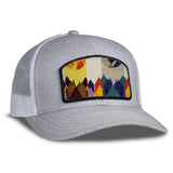 Our Trucker Style hat with a nifty embroidered felt patch. Big Rig not included.