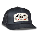 Our Trucker Style hat with a nifty embroidered felt patch. Big Rig not included.