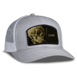 Our Trucker Style hat with a nifty embroidered felt patch. Big Rig not included.