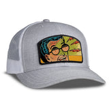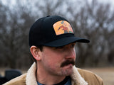 Our Trucker Style hat with a nifty embroidered felt patch. Big Rig not included.
