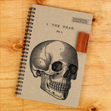 These awesome notebooks are handmade in the USA. The front and back covers are industrial chipboard with a nice little leather pen holder incorporated for your convenience. DANGER, contents of the Skull Notebook are for the writer only!