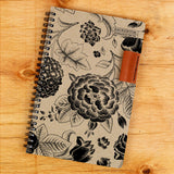 These awesome notebooks are handmade in the USA. The front and back covers are industrial chipboard with a nice little leather pen holder incorporated for your convenience. An excellent gift for any gardener, the Flowers Notebook is sure to be well enjoyed!