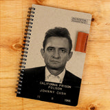 These awesome notebooks are handmade in the USA. The front and back covers are industrial chipboard with a nice little leather pen holder incorporated for your convenience. Arrive to the cafe in style toting your Johnny Cash notebook!