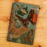 These awesome notebooks are handmade in the USA. The front and back covers are industrial chipboard with a nice little leather pen holder incorporated for your convenience. Caterpillars transform into butterflies right before your eyes on the Metamorphosis Notebook!