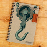These awesome notebooks are handmade in the USA. The front and back covers are industrial chipboard with a nice little leather pen holder incorporated for your convenience. Get hooked into jotting things down with this notebook.