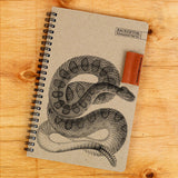 These awesome notebooks are handmade in the USA. The front and back covers are industrial chipboard with a nice little leather pen holder incorporated for your convenience. Strike fast and hard with the Rattlesnake Notebook!