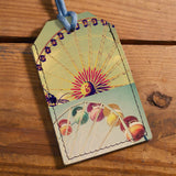 The tags are printed using a proprietary process we developed in-house. This process bonds the image to the leather, so the two become one. Each tag is paired with a complimentary paracord color, and holds any standard business card.
