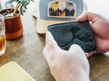 This particular wallet is equipped with with eight card pockets and a cash pocket, so you'll have plenty of room for all of your stuff. However, we still worked really hard to keep it thin enough to easily slip in to your front pocket, too!