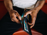 This particular wallet is equipped with with eight card pockets and a cash pocket, so you'll have plenty of room for all of your stuff. However, we still worked really hard to keep it thin enough to easily slip in to your front pocket, too!