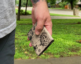 All of our wallets are handmade from scratch in Oklahoma, USA. Each piece is cut, dyed, sewn, and finished by hand, so you know you're getting a top quality product.