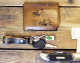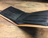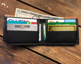 All of our wallets are made by hand from full grain leather right here in our studio. Each piece is cut, dyed, sewn, and finished by hand so you know you're getting a top quality product. The image we apply to the wallets is fused with the leather, so as long as the surface of the leather remains, so will the image. This wallet has plenty of room for all of your stuff, and we worked really hard to keep it thin enough to easily slip into your front pocket too